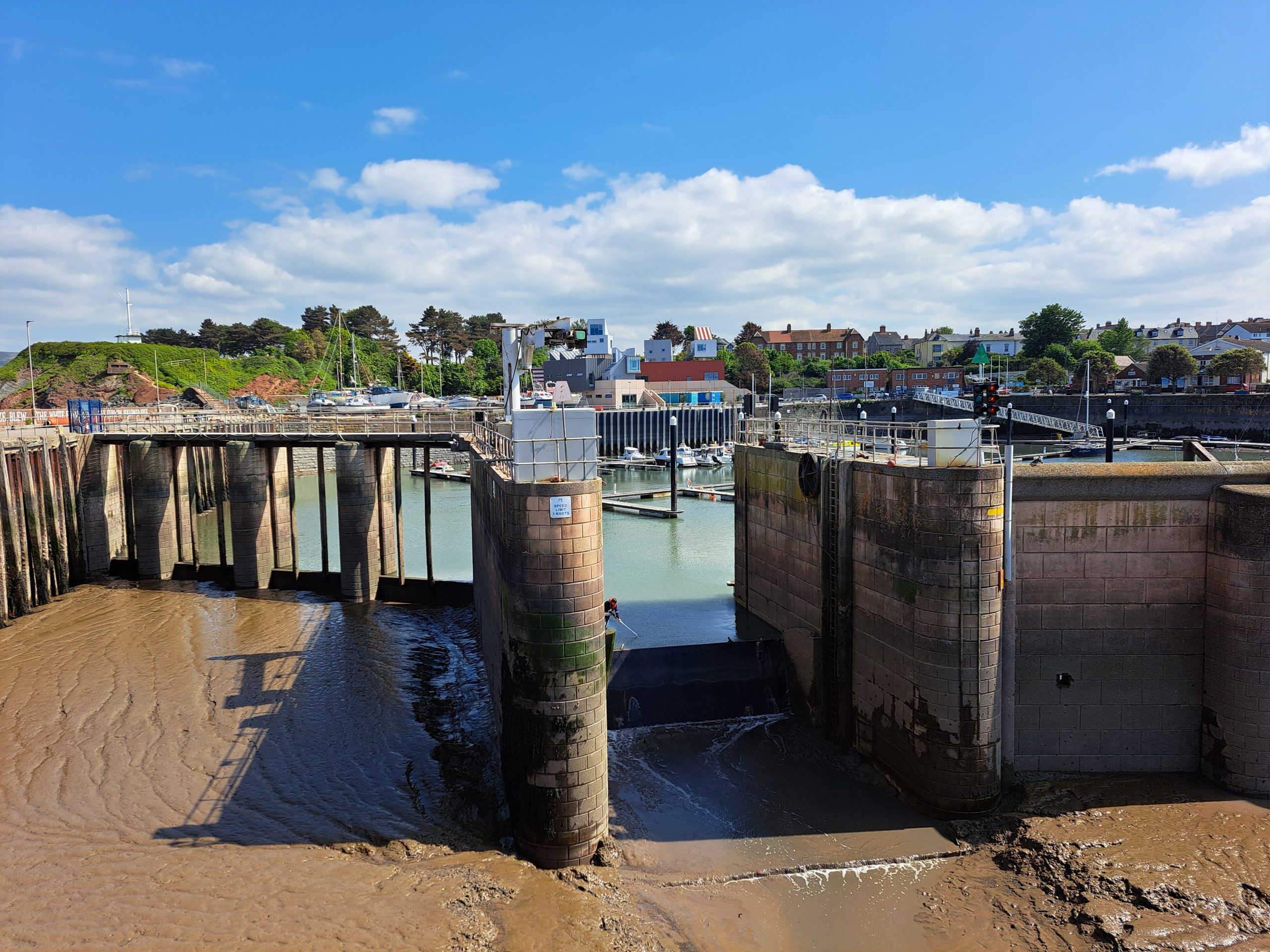 Access to Milford Haven is at all states of the tide – but take care in the approach channel at low water springs. The sea lock (Ch.14 ‘Pier Head’) itself has nice new floating pontoons on each side. We noticed that the advertised waiting pontoon was missing. It had not been put outside the harbour by the time we arrived on 13 June – but we did not need it. We got there around high water, and the lock was on freeflow.